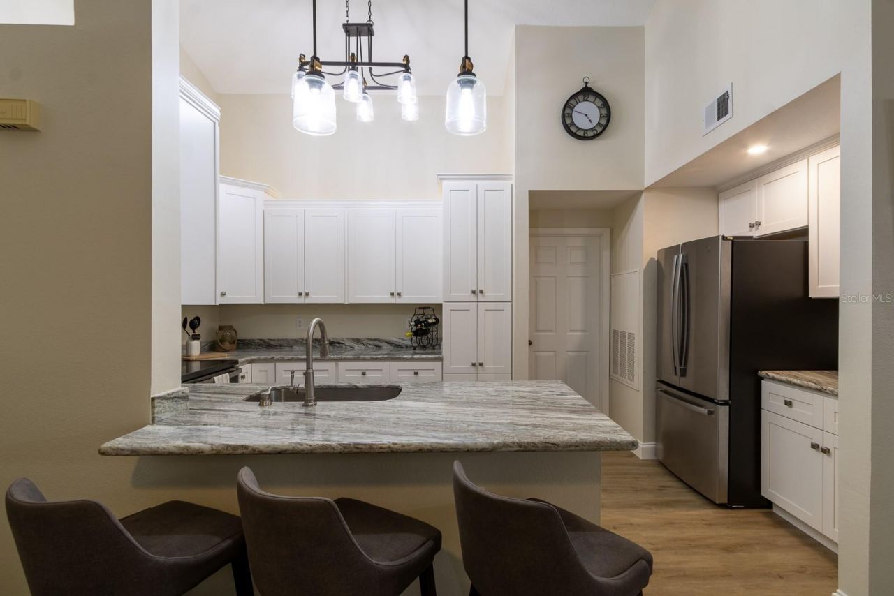 If you're looking for a completely renovated, move-in-ready condo, this is the one. This beautifully updated 2-bedroom, 2-bath second-floor condo in The Links has been tastefully redone from floor to ceiling. Recent improvements include an expanded kitchen, a designated laundry room, luxury laminate flooring, fresh paint, updated lighting, door hard wear and plumbing fixtures throughout. The kitchen shines with granite countertops, new cabinetry including lower pullout drawers and corner lazy Susans, stainless steel appliances, a designated Coffee Bar, and a single-height breakfast bar that opens to the main living space. The spacious great room features vaulted ceilings and sliding glass doors leading to a private balcony overlooking a peaceful park-like setting. The primary bathroom has been completely reimagined, with the dividing wall between sinks & shower removed to create an open, spa-like feel, featuring a new tiled walk-in shower and dual-sink vanity. Both bedrooms offer walk-in closets, providing ample storage. Additionally, there is a laundry room with stackable washer /Dryer and storage shelving. This truly is a one of a kind condo, in the Links. Living at The Links means enjoying fantastic amenities, including a sparkling pool overlooking the golf course, fitness center, clubhouse, and even a car wash station. You'll also be surrounded by more than 15 miles of scenic walking trails throughout Haile Plantation. Just a half-mile away, the Haile Village Center offers a weekly farmers market, shopping, and fantastic dining options. For those seeking even more, optional membership at Hawkstone Country Club provides access to championship golf, tennis, pickleball, additional pools, a state-of-the-art fitness center, and upscale dining. This is more than a home-it's a lifestyle. Schedule your showing today and experience the best of Haile Plantation living.