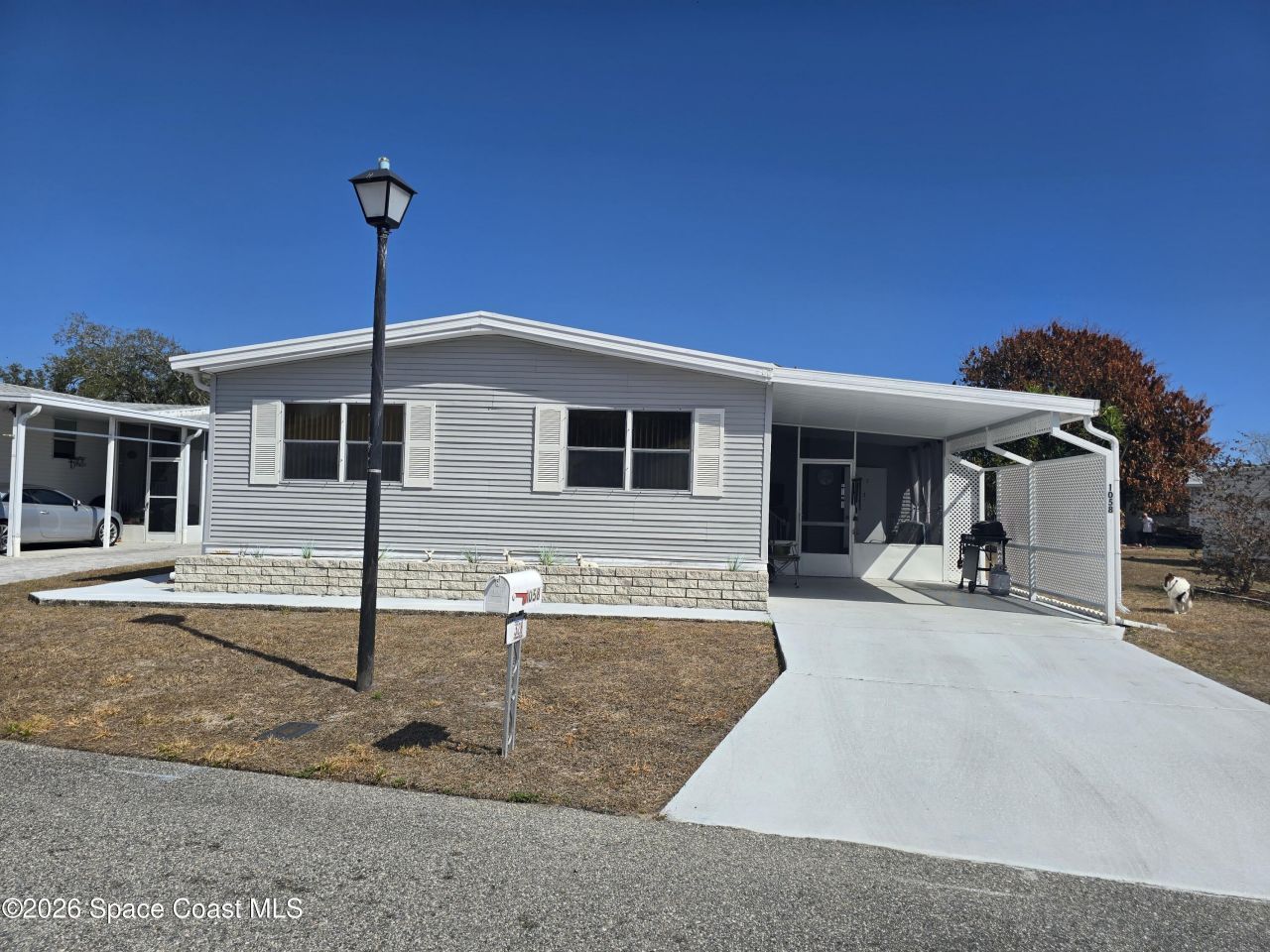 Welcome to this delightful 2-bedroom, 2-bathroom manufactured home located in the highly sought-after gated Holiday Park community in Palm Bay, Florida. This home offers a comfortable and inviting atmosphere with a spacious living area, galley-style kitchen, and a cozy primary suite. The community offers two sparkling heated pools, a clubhouse, a billiards hall, shuffleboard/pickleball and bocce ball courts. The association fees also include lawn maintenance, cable/internet, and gated security. Visit holidayparkfl.com.