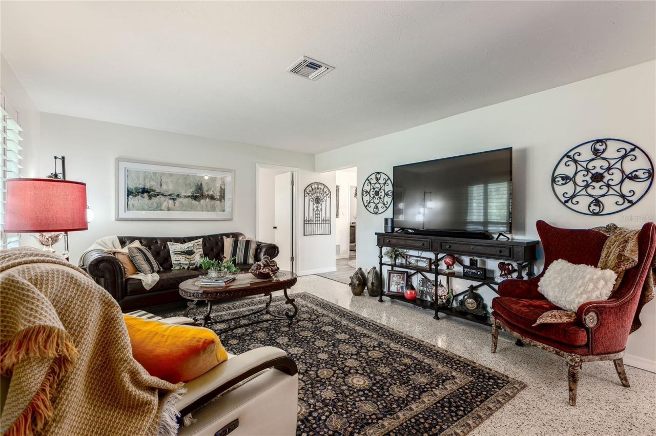 *Price Improvement* Remodeled! 2BR/2BA with XL Garage, Oversized Vinyl Fenced In Yard, Screened In Spacious Back Porch with ceiling fan, Fabulous pool, and nearly 2000 square ft of living space! Feel like royalty of Kingswood Ct while sitting on the covered and long front porch with a grand view of your whole neighborhood. Discover this beautifully remodeled Sanford gem in a quiet, well-kept cul-de-sac neighborhood near the Lake Mary border, creating privacy, a feeling of safety, and a sense of community. The entire property has been meticulously maintained from the front porch to the gorgeous backyard. As you enter, you'll find a flex space, currently being used as a living room, that leads to an open layout filled with natural light and a stylish family room with vaulted ceilings, wood burning fireplace, and a spacious dining area. The entire home features wood-look ceramic tile and beautifully Restored Original TERRAZZO flooring! The renovated kitchen boasts sleek granite countertops, GE Cafe Platinum Glass Induction Range and Hood, custom made soft closing cabinetry and drawers, stainless steel appliances, breakfast bar, and a breakfast nook-perfect for everyday living, incredible dinner parties, and entertaining. Both bathrooms have been tastefully updated with modern fixtures and finishes. The house has a convenient split plan providing needed privacy and space. The air conditioned laundry room is located inside, between the kitchen and the garage. Step outside from the Kitchen or Family Room's French Doors to a spacious, screened-in back porch that offers the perfect spot for morning coffee, movie nights, or evening unwinding, overlooking your sparkling volleyball designed pool and the large back yard ideal for pets, play, or more entertaining and relaxation! Additional highlights include, New Hot Water Heater(2024), New A/C unit(2024), New Septic System(2023), updated double paned windows and doors(2020), an oversized garage with room for storage or a workshop, Owl Home Security System, no HOA, and a prime location just minutes from golfing, shopping, dining, and top-rated schools in Lake Mary and Sanford. This is the low-maintenance, high-comfort home you've been waiting for. Schedule your private tour today!