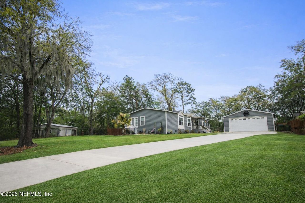 Welcome to this spacious and inviting 3 bedroom, 2 bath home nestled in the serene Water Bluff Shores community of North Jacksonville. Offering over 2,200 sq. ft. of living space, this property blends comfort and privacy with the rare bonus of beautiful creek views right from your backyard. Step inside to discover a generous, functional layout with ample room for living, relaxing, and entertaining. The large farmhouse-style kitchen features an island, an eat-in breakfast bar, and more cabinet space than you could dream of. Enjoy two separate living rooms, both filled with natural light from large windows that frame the tranquil water views and create a peaceful atmosphere throughout the home. The private primary suite offers exceptional space, two walk-in closets, a built-in vanity, and a separate shower and soaking tub. A well-appointed guest suite provides another comfortable bedroom with its own walk-in closet that is perfect for children or overnight company. Stunning creek views!!