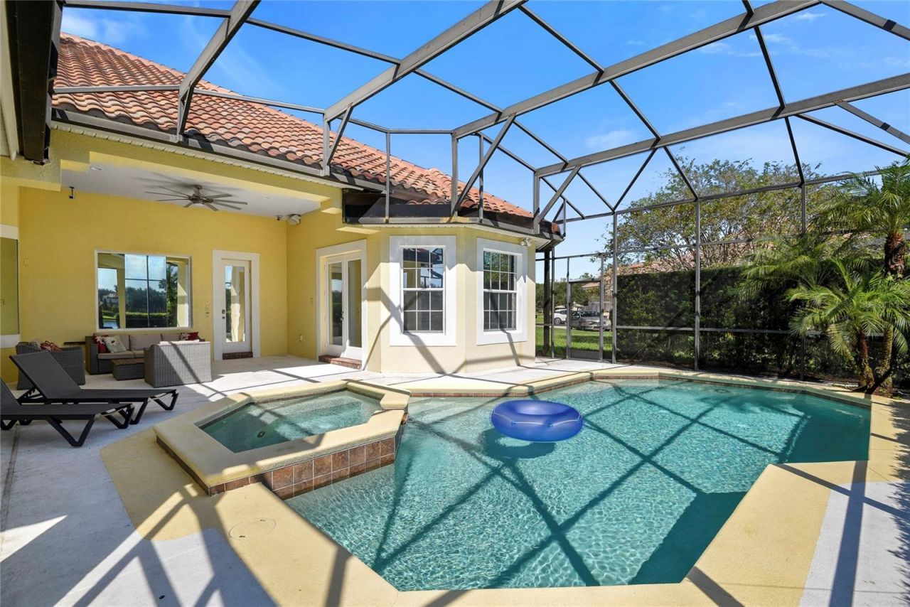 Experience the Florida lifestyle in this stunning FULLY FURNISHED 5-Bed/4-Bath pool home on over 1/2-acre, with a welcoming open floor plan spanning 4,500 square feet, spectacular Theater Room, custom upgrades and designer accents throughout, and new AC system in August 2025. Situated across from the community park and tennis on one of the best waterfront lots in sought-after gated Tildens Grove, offering a perfect blend of privacy and serene panoramic views. Step into elegance in the light and bright formal Living Room enhanced by a stunning Fireplace, Pool and Lanai views, and high Coffered Ceiling. The equally exquisite Formal Dining Room is also adorned with a Coffered Ceiling and ample natural lighting. A beautiful open Island Kitchen at the center of this home, perfectly situated for accommodating and entertaining friends and family, boasts Granite Counters, built-in Wall Oven and microwave, granite back splash, abundant storage in 42 wood cabinetry with pull outs, 5 burner Gas Stove and high-end stainless appliances, built-in cabinet Pantry. The Kitchen opens to the Dinette area with large picture window overlooking the Lanai and Pool, and Family Room ideal for entertaining with Built-Ins, storage and gorgeous details with French Doors leading to the outdoor living space. Relax, play, or entertain outdoors in the voluminous Pool with Spa and expansive covered Lanai, providing shaded space perfect for enjoying refreshments as you gaze across the water. The spacious Owner's Suite is a true retreat tucked away on one side of the home, including an elegant bedroom with Sitting Area, stately entertainment wall unit, Double-Tray Ceiling, handsome wood flooring, French Door access to Lanai, and a generous walk-in California Closet system with dressing space. The finely appointed, light-filled Ensuite Bath boasts split sink vanities, large walk-through dual-head shower, Jetted Garden Tub, and private water closet. On the opposite end, the 2nd and 3rd bedrooms share a convenient Jack and Jill bathroom. The private 4th bedroom with Ensuite Bath is perfect for your visiting guests. The 5th bedroom adjacent to the Foyer is currently utilized as a den/home office. Enjoy a home cinema experience in the fabulous 6-seat Theater Room, equipped with great acoustical audio, large movie screen, leather recliner seating, gorgeous Custom Millwork with concealed column storage, all overlooking the Scenic Pond. Located in the hallway between the Kitchen and Dining Room are 2 extravagant built-in Mahogany glass-front cigar Humidors including Wine Storage to display and preserve cherished collections. High ceilings and Crown Molding accents throughout exude a sense of grandeur. French Doors from multiple rooms let you open the home to the outdoors space. Large, covered Lanai with a built-in grill, sink and counter space, screen enclosed Pool and heated Spa with a panoramic pond view. The neighborhood is quiet and private, with 140 luxury homes, in the top school districts, centrally located for convenience to Windermere's dining, shopping and culture, local theme parks, 429, I-4, and Florida's Turnpike. Whether you're entertaining or seeking a peaceful retreat, this home delivers on every level.