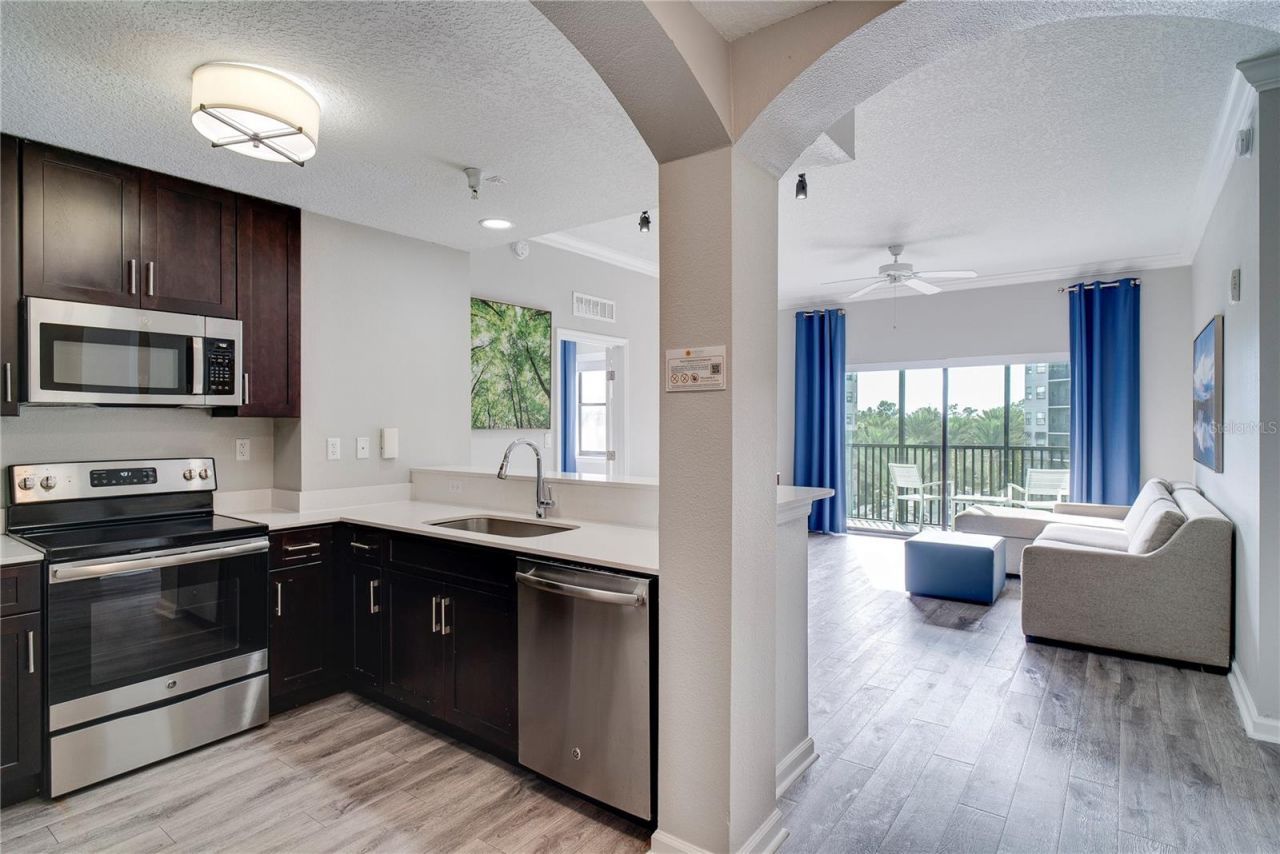 ust minutes from Disney, this fully furnished condo at The Grove Resort and Waterpark offers the perfect balance of vacation luxury and investment potential. Close to Universal Studios and SeaWorld, This fully furnished 4th-floor vacation condo-hotel unit offers a quiet and peaceful retreat with tranquil views of the fountain and rotunda, yet it sits inside one of Central Florida's most exciting family resorts. Whether you choose to use it or your own getaways or let the on-site management company rent it out for you, this is a turn-key, worry-free investment in the world's most popular family vacation destination. The Grove Resort and Waterpark Orlando has earned a global reputation as a world-class destination, drawing visitors back year after year. And it's easy to see why. This is more than just a place to stay-it's a vacation experience all on its own. Families love that they can save money by taking a day off from the theme parks without ever feeling like they're missing out. Spend the day floating along the lazy river, gliding under waterfalls and through lush Florida landscaping. Take on the challenge of the dual FlowRider surf' stimulator or race down the twisting water slides. Lounge by the zero-entry resort pool, sip cocktails from your private cabana, and let the stress melt away. For the little ones, there's an entire activity pool complete with a two-story water adventure, three mini-slides, playful water spouts, and a wading pool designed just for them. The resort also offers casual dining at the Longboard Bar & Grill, plus multiple restaurants, bars, and a sundry shop-all just an elevator ride away. Adults can treat themselves at the full-service spa, while the more adventurous can head to beautiful Lake Austin for kayaking, paddle boating, and other water activities. Days here are filled with connection, laughter, and memories-whether you're relaxing with loved ones or meeting fellow travelers from around the world. Inside your spacious condo, you'll find everything designed with comfort and convenience in mind. The gourmet kitchen is stocked with everything you need-from whipping up breakfast before heading to the parks to blending frozen drinks for sunset on the balcony. A full size washer and dryer are tucked neatly in the kitchen area, making longer stays easy and freeing you from over-packing. With generous living and dining apace, large bedrooms, and stylish finishes, this condo truly feels like home-only better. Owning at The Grove Resort means you get the beat of both worlds: a fully managed, hassle-free investment opportunity with the added benefit of having your own vacation retreat whenever you want it. With Orlando's unmatched demand for family travel, this is one of the smartest ways to own property in Central Florida. The Grove is more than a resort. It's a lifestyle, an investment, and a place where lifelong memories are made. Come see why owning here is the ultimate way to enjoy the happiest place on earth.