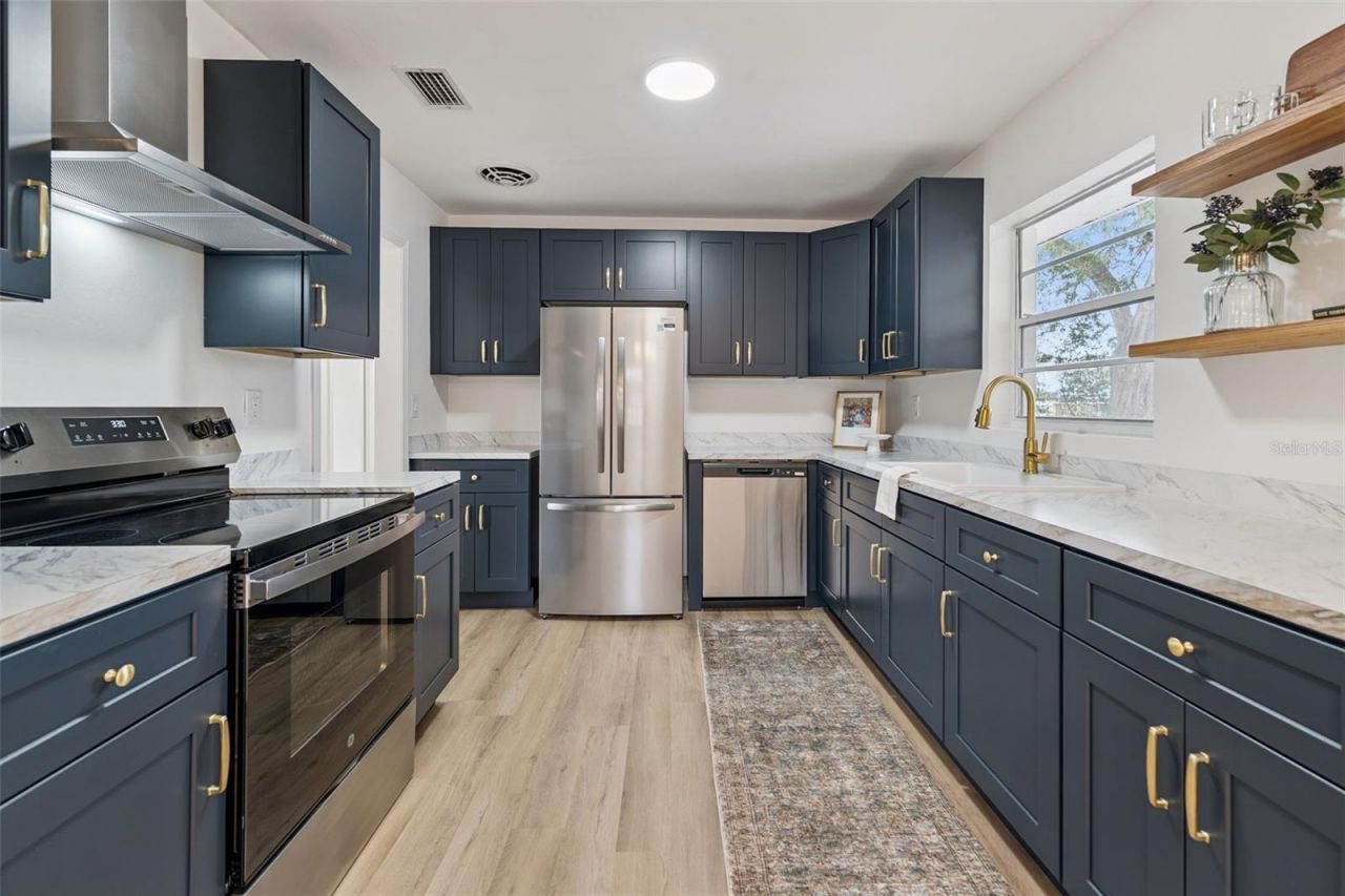 Completely remodeled and move-in ready, this beautifully updated home with no HOA offers peace of mind with a new permitted roof, permitted electrical updates, updated plumbing, a new mini-split heating and cooling system, and a main HVAC system replaced in 2023. Inside, you'll find fresh interior and exterior paint, updated LVP flooring, modern lighting, and a renovated kitchen featuring shaker-style cabinetry, stone-look laminate countertops, new stainless steel appliances, and stylish finishes throughout. The bathrooms have been tastefully updated, and the spacious layout is filled with natural light, creating a warm and inviting atmosphere with clean, modern design.Designed for both everyday living and entertaining, the home offers comfortable living spaces, updated finishes, and a functional flow throughout. Outside, the large fully fenced yard is shaded by mature trees and provides plenty of room to relax, play, garden, or host gatherings. A covered carport adds convenience and practicality.Located in an established Lakeland neighborhood, this property is just a short drive from Florida Southern College and near Lake Hollingsworth, one of Lakeland's most popular destinations for walking, biking, and enjoying the outdoors. You'll also appreciate the close proximity to shopping, dining, and everyday essentials, including Southgate Shopping Center.One or more photos and/or video have been virtually staged. Fireplace is decorative and shown for marketing purposes only. Owner has not operated the fireplace. Buyer should verify condition and have the fireplace inspected during the due diligence period. Any fire shown in photos or video has been digitally added for illustrative purposes only.