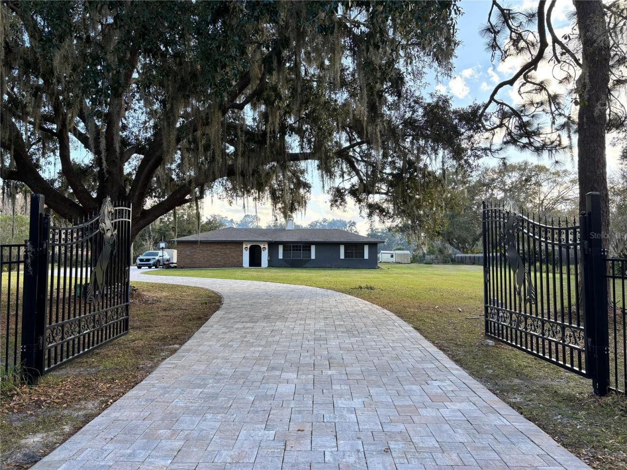 Welcome to your private oasis in the heart of Kissimmee! This stunning, fully remodeled 3-bedroom, 3-bathroom home sits on an expansive 2.4 acres with no HOA or CDD-offering freedom, space, and endless possibilities. Enjoy peaceful living with the convenience of a public boat ramp right on the street, perfect for weekend adventures on the water.This home features numerous upgrades, including a new roof in 2018, new more potent AC in 2024, and a new water softener for peace of mind. The property is fully fenced with a gated entrance and boasts an extended brick-paver driveway. A pool safety fence adds extra security, while the impressive 50-foot covered lanai patio is perfect for hosting gatherings or relaxing outdoors. Additional highlights include two storage sheds, providing plenty of space for tools, toys, or equipment. Centrally located yet wonderfully private, this rare property offers the best of Florida living.