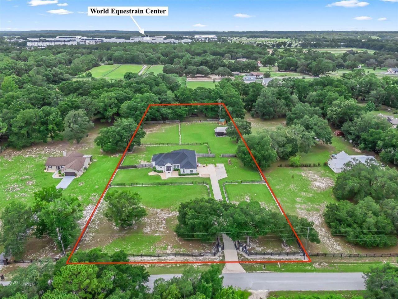 Beautiful, pristine 3 acre mini farm just one block from the World Equestrian Center. This immaculate and beautifully updated custom 3 bedroom, 2 and 1/2 bathroom home is complete with a spacious gourmet kitchen, formal dining room, breakfast nook overlooking riding area, 2 large living areas and split bedroom floorplan. The master suite is large & inviting with a sitting area, 2 large walk in closets. This farm is complete with 3 paddocks w/ nice mature oak trees, a nice riding area, 3 stall center aisle barn complete with screened sitting area, feed/washroom, separate feed/hay building, and so much more! The property is offered fully furnished and turnkey. Don't miss this special property!