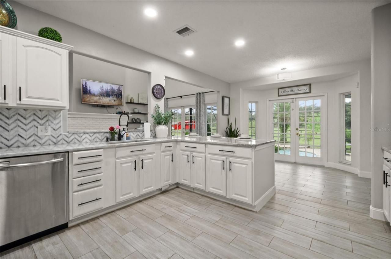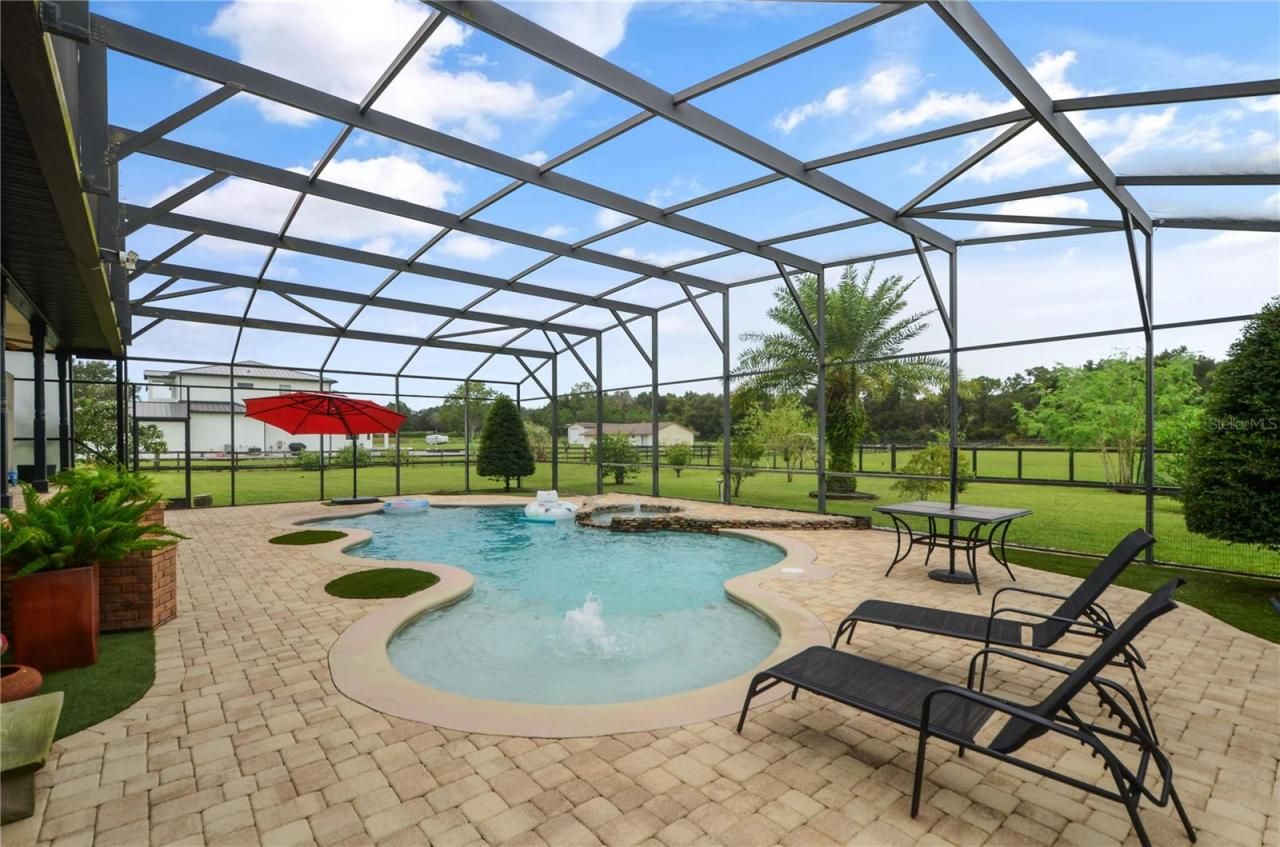 ** Zoning allows for developers and investors to build small subdivision; up to 2 house allowed on an acre. **Sprawling 5-acre cleared and high and dry, this magnificent 4-bedroom, 3-bathroom home offers luxurious living with a blend of modern elegance and country charm. The two-story residence features marble floors and countertops, enhancing the open-concept plan that flows effortlessly from the kitchen with breakfast bar to the spacious family room and dining areas. Upstairs, a loft style media/game room provide perfect spaces for relaxation and entertainment. The Zen- like primary suite boasts an inviting tub and bath, while the additional bedrooms adds ample space for family or guests.Step outside to your private oasis with a sparkling pool, spa, and huge screened lanai, unforgettable fire pit -ideal for year-round outdoor living and star gazing. A charming front porch invites you to enjoy the peaceful surroundings.The property also includes a separate in-law suite, perfect for extended family or guests, as well as a large barn/workshop with bathroom for work and play. The beautiful cobblestone driveway adds a touch of sophistication as you approach this hidden gem.This is country living with luxury, offering space, privacy, plus wide range of entertainment at NorthWest Sports Complex/Amphitheatre, Ask about rare development opportunity for small subdivision. The perfect environment for your serene retreat. Hurry; Don't miss out ! Call today for appointment ... Bring the horses !!