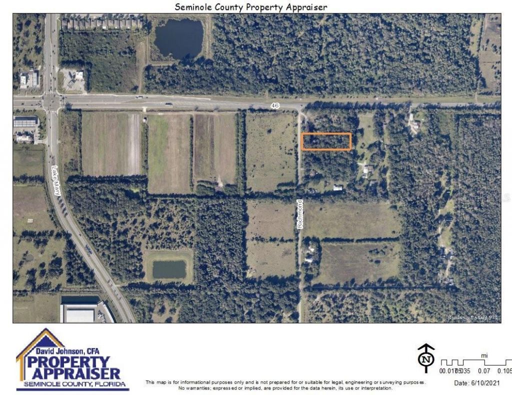 REDUCED!!!!PRIME LAND FOR SALE!1+/- acres on Richmond Ave, with easy access to SR 46 just east of the Lake Mary Blvd. Currently this property is zoned Agricultural . FUTURE LAND USE: HIPAP (High-Intensity Planned Airport). *LOT DIMENSIONS,LOT SQUARE FOOTAGE AND LOT SIZE ARE ALL APPROXIMATE.