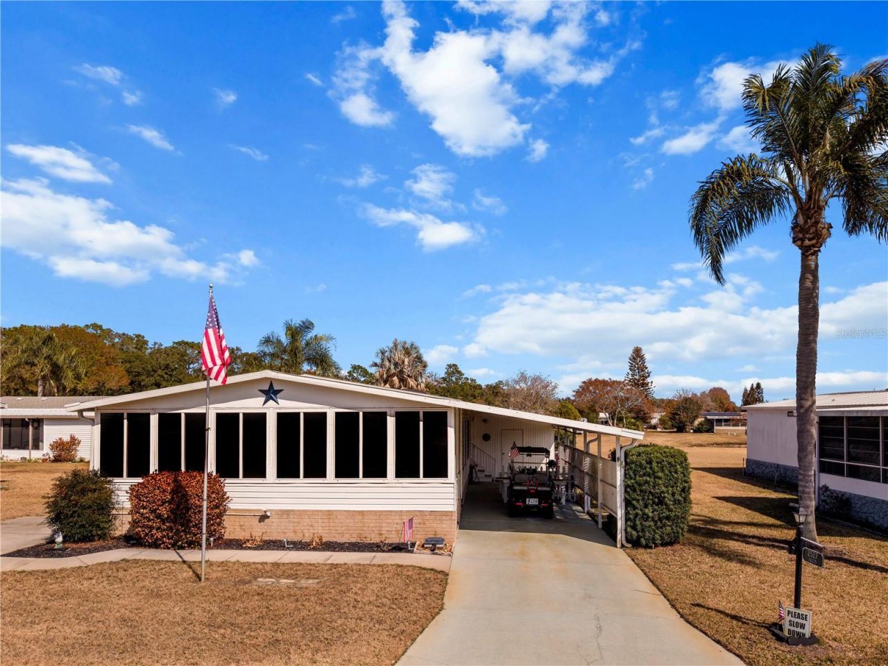 WATER VIEW.......located in TEKA VILLAGE, a great 55+ GATED community. TWO driveways, a 12x45 3-CAR CARPORT and TWO FLORIDA ROOMS/PORCHES!! The front Florida Room has GLASS WINDOWS......and rear Florida Room has SCREEN and VINYL WINDOWS. Our Kitchen has been REMODELED.....new cabinets with QUARTZ counters. Stainless Steel appliances will convey, breakfast bar is great for snacking, Lazy Susan makes storage easy, and a built-in storage nook adds extra space. ROOF WAS REPLACED IN 2019, home was REPIPED IN 2021, both baths have updates......lots of natural ambiance to include a skylight. The Owner's Suite has a private bath and personal access to the back patio. Tranquil pond panorama from this back patio......enjoy coffee and watch the sunrise over the water. A secondary rear patio gives opportunity for BBQ cook-outs. In addition to the HUGE CARPORT, we also have an 11x11 utility building that houses the washer & dryer, spare fridge, and lawn tools. With shelving & benches, it's a superb place to tinker, storing the bikes or holiday totes. Lamp post & flagpole adorn the front yard......plenty of space to park, situate the golf cart, & have guests over. HOA is very reasonable at $110 monthly......includes an INSIDE POOL, a CLUBHOUSE, small GYM, SHUFFLEBOARD COURTS, a POND DECK, & an RV/CAMPER or BOAT PARKING yard!!!! Reach the OIA in 20+ miles, Melbourne Beach in 53+ miles, downtown St. Cloud in 4+ miles, or Lake Nona in 26+ miles. St. Cloud offers beautiful lakes for boating or fishing.....a lakefront park for volleyball or July 4th fireworks......and local farms for fresh produce. Come be a part of this 55+ community.....own the land.....partake in fun activities at the clubhouse......and enjoy a friendly atmosphere!! AT FULL PRICE, FURNISHINGS, GOLF CART, & SHED CONTENTS WILL STAY. SMALL 'JOHN' BOAT IS FOR SALE SEPARATELY.