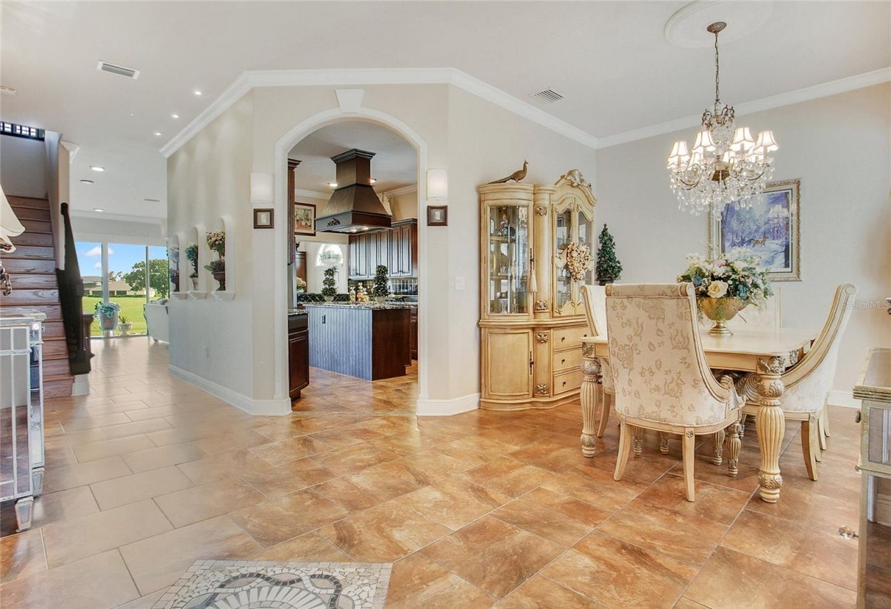 Experience the lifestyle you deserve! Nestled between Lake Dora and Lake Beauclaire, Deer Island is an exclusive, private island gated community offering both golf and boating. This 3 Bedroom, 3.5 bath, plus bonus room is a custom estate home with water views. Located on the 10th hole of the renowned Joe Lee-designed golf course, it is sure to impress. Meticulously maintained and gently used, this home showcases exquisite millwork, plantation shutters, granite finishes, multiple balconies, and thoughtful design touches throughout. The chef's kitchen features expansive cabinetry, stunning stone surfaces, and an impressive wooden hood over the center island with cooktop, perfect for culinary creativity. The primary suite serves as its own retreat with large sliders that open to a beautifully covered screened lanai, offering seamless indoor-outdoor living and complete with an en-suite bathroom featuring a garden tub and an open walk-in shower. The first floor also features an elegant dining room with a bay window and a spacious living room with oversized sliders that open to breathtaking golf course views and another set of sliders off the side that lead to a covered lanai, enhancing the indoor-outdoor flow. A well-appointed laundry room, located off the garage, includes custom cabinetry, a pantry, and granite countertops, and a tastefully designed powder room off the living room adds sophistication and convenience. Upstairs, the home continues to impress with its thoughtful architecture. The second floor boasts an open lounge room with a walk-out to a private sundeck, ideal for morning coffee or evening cocktails, all while enjoying expansive views of the golf course. This versatile space can serve as a sitting room, office, or even be converted into a fourth bedroom. It shares a Jack-and-Jill bathroom with tub that connects to an adjacent bedroom that also has its own balcony. The hallway leading to the bedrooms features a charming alcove that opens onto another balcony. The front-facing bedroom is also en-suite, complete with a beautifully tiled shower. It also has its own covered balcony, perfect for reading or relaxing. Designed with a keen eye for elegance, this home offers a perfect balance of form and function. Additional highlights include a two-car garage, Spanish tile and copper roof, paver driveway, and the Deer Island Golf Club features dining, full bar, and other premium amenities, making this home a lovely retreat after a busy day. Situated minutes from the charm of historic Mount Dora, shopping, dining, and entertainment, residents have the convenience of urban amenities with the tranquility of a country club setting. The proximity to State Park's for hiking/biking trails and canoeing, major attractions like Universal Studios and Disney World, adds an extra layer of appeal, especially for those looking to enjoy Florida's renowned entertainment districts and beaches.