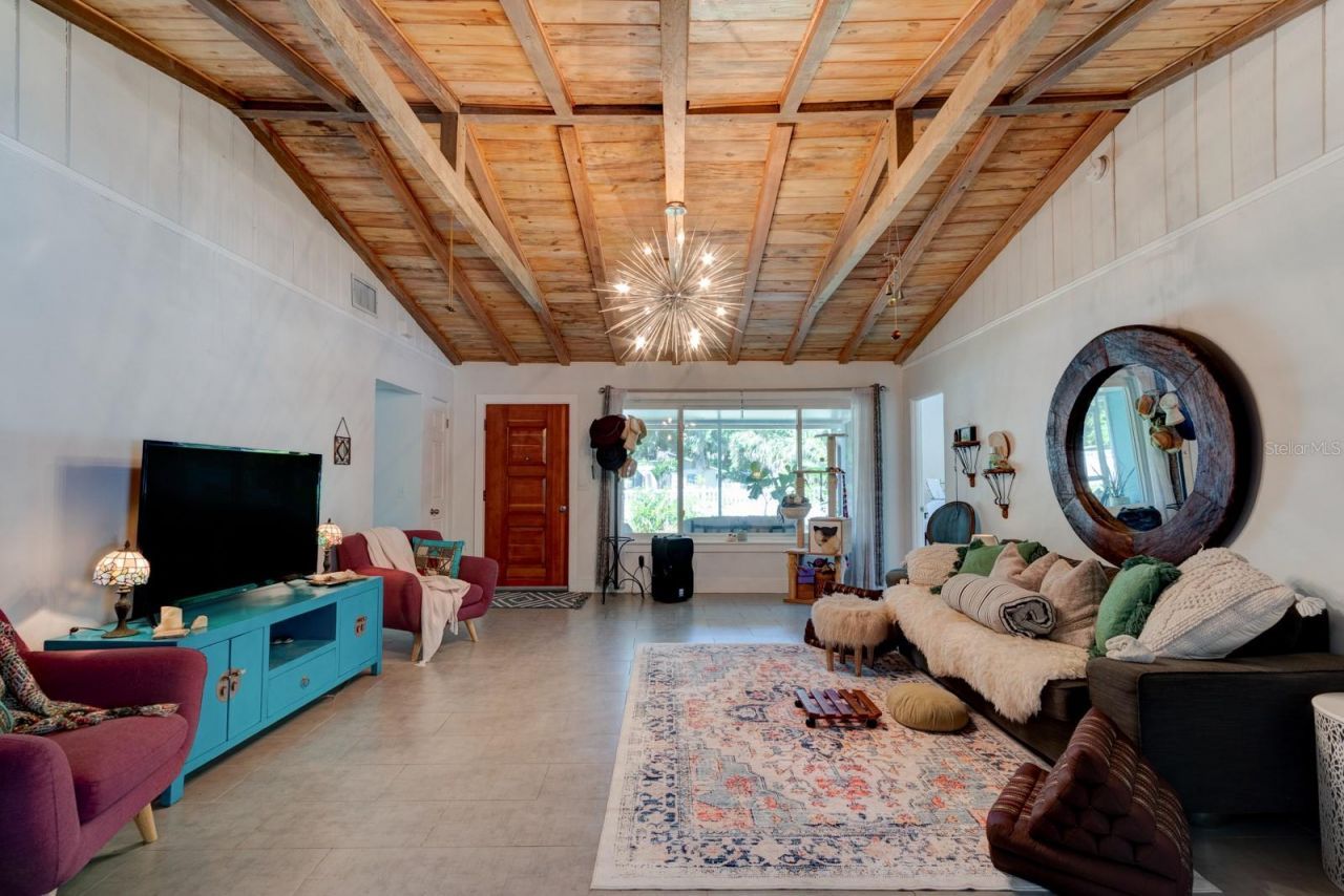 EXCELLENT LOCATION - A TRUE HIDDEN GEM! Have your cake and eat it too with this one-of-a-kind beachy-homestead bungalow, ideally located on nearly half an acre in the heart of Daytona Beach-yet just 3 miles from the sparkling shoreline. Originally built in 1957 and now beautifully remodeled, this turnkey 3-bedroom, 2.5-bath home blends old Florida charm with modern, California-inspired resort living. Step inside and experience the peaceful, spa-like ambiance with exposed beam ceilings, an original wood-burning fireplace, and a bright, open layout that feels like a tranquil meditation retreat. The home features a newly installed AC, newer roof, and updated water heater, providing peace of mind for years to come. Outside, you're in your own private oasis. The lush, fenced yard backs up directly to a protected nature preserve, offering extra privacy and a buffer from city noise. It's perfect for gardening, pets, and peaceful morning walks where you can pick wild Florida oranges along the way. The grounds are a gardener's dream, with raised beds and an extraordinary collection of exotic fruit trees including mango, moringa, loquat, Asian pear, red jaboticaba, dragonfruit, cherimoya, jujube, starfruit, passionfruit, sapote, acerola cherry, longan, fig, pomegranate, lemon, lime, grapefruit, peach, avocado, and three banana varieties. A mini barn and chicken coop add a charming touch for the aspiring homesteader. Relax on your screened lanai with a view of your garden and mini-pond, or explore the neighborhood, with nearby shopping, restaurants, and cultural highlights like the renowned Museum of Arts and Sciencesjust around the corner. Bonus: This property is offered with a buildable adjacent lot, making it ideal for multi-generational living or future expansion. Located in Flood Zone X with no history of flooding, this home offers both beauty and peace of mind. Don't miss the chance to own this unique blend of serenity, style, and location. This home is truly a rare find!