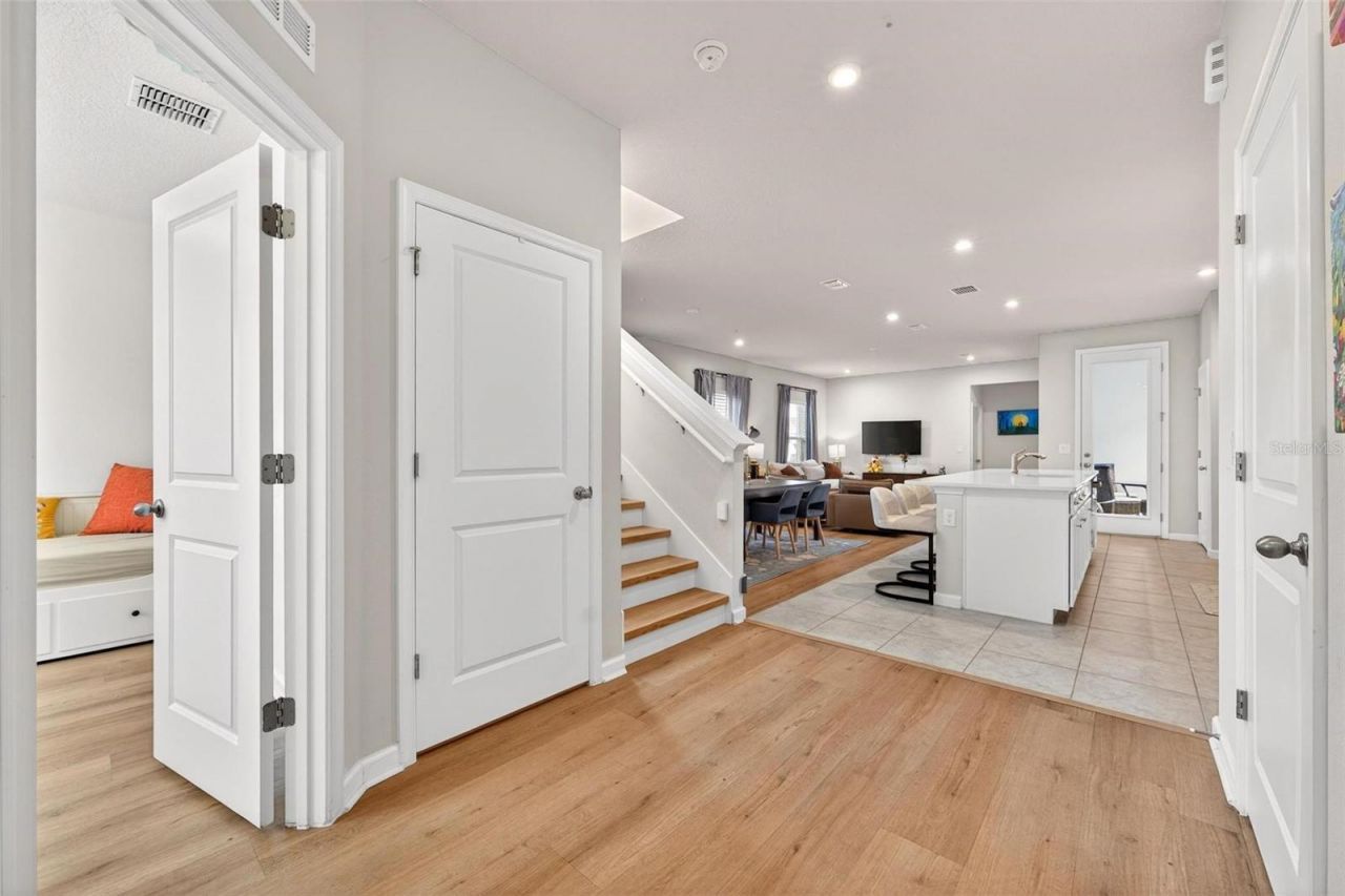 One or more photo(s) has been virtually staged. Located at 3867 Denali Drive in Apopka, this well-maintained residence offers a bright, open-concept layout with newly updated flooring throughout the main living areas, creating a clean and cohesive flow from room to room. The spacious kitchen features white cabinetry, stainless steel appliances, a.cooktop with a dedicated range hood, a large center island with seating, and ample counter space that opens seamlessly to the dining and living areas, ideal for everyday living and gatherings. Natural light fills the home through multiple windows with tasteful window treatments, while recessed lighting adds a modern touch. The primary suite offers a comfortable retreat with a walk-in closet and a well-appointed bathroom. Additional living space upstairs provides flexibility for a variety of uses. Bathrooms are finished with neutral tile and contemporary fixtures, including a walk-in shower with a built-in bench. A dedicated laundry area adds convenience. The home is equipped with a gas tankless water heater, water softener, and a J1772 EV charger, offering added efficiency and functionality, all set within an established Apopka neighborhood with convenient access to local amenities.
