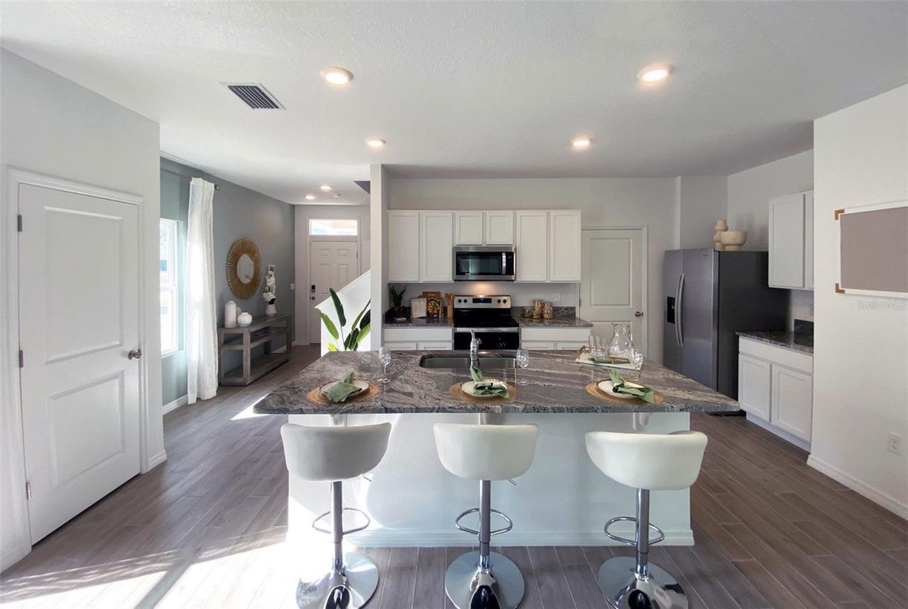 Former Model Home! Experience the best of two-story living in this thoughtfully designed 4-bedrrom, 2.5 bathroom home. The main floor seamlessly blends the living, dining and kitchen areas, creating an open and inviting space. Upstairs, discover four well-appointed bedrooms, including the primary bedroom with ensuite bathroom and walk in closets. Balancing functionality with modern aesthetics, this home is the perfect canvas for daily living and entertaining. The kitchen is appointed with a stainless-steel range, microwave and built-in dishwasher. The Elston is equipped with a state-of-the-art smart home system. Pictures, photographs, colors, features, and sizes are for illustration purposes only and will vary from the homes as built. Home and community information including pricing, included features, terms, availability and amenities are subject to change and prior sale at any time without notice or obligation. CRC057592.