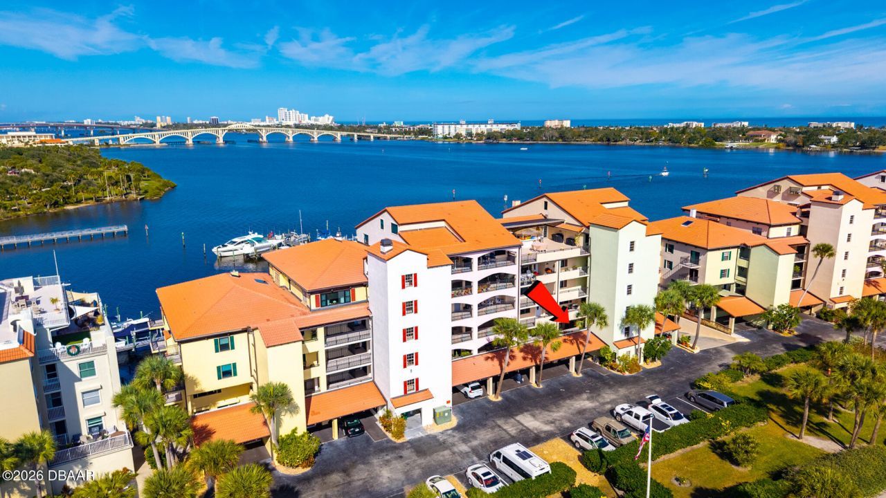 The views can't get much better than this! Whether you are in the primary bedroom, living room or kitchen you have the view of the Halifax River. The condo offers open space living featuring an opened up kitchen .There is a bar set up in dining room/living room to easily entertain guests. Lots of closets. Sit out on the balcony, enjoying your beverage of choice and watch the boats coming and going. Feeling really lucky? try fishing off the dock. This 2 bedroom /2bath condo is so conveniently located to so many restaurants, shopping, Jackie Robinson Ball Park, library. The new Riverfront Esplanade Park is close and ready for you to walk, jog, take the kids or dogs, or just chill and take in the surroundings.You are a very short drive or bike ride to the ''World's Most Famous Beach'' A/C is 2022, roof is new. You can dock your boat at the community marina.