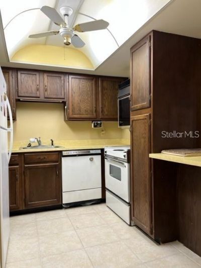 Beautiful view of lake from this 2/1.5 upstairs condo in Silver Springs Shores steps away from the golf course. Perfect for year round living, snowbirds or as an investment property. Being sold 'AS IS. Contents currently in unit stay with property.