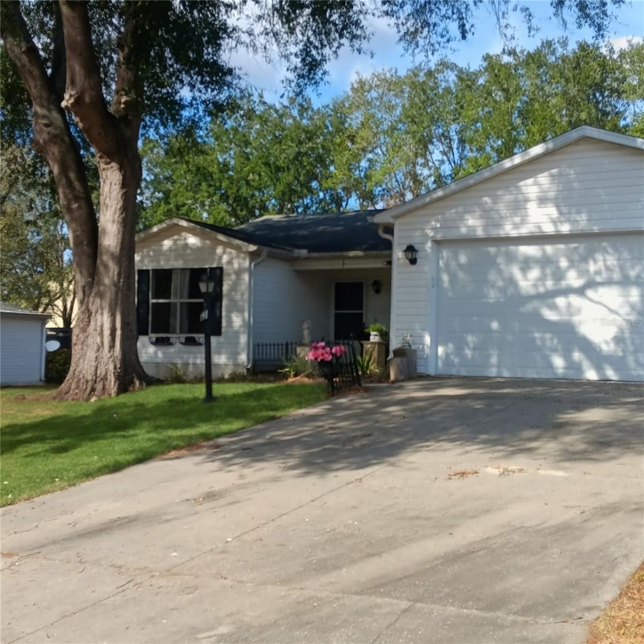 Looking for a 3/2 home a 2 car garage with no HOA or BOD? This could be the one. Located at the area of the Villages offering ample shopping and activities nearby. Enjoy Golf Cart life for shopping and scooting around! This spaciously designed home has vaulted ceilings, open concept design and a kitchen island for gathering and conversation. Through the slidig glass doors you will find the breezy and bright florida room for coffee time, reading and always a peaceful Florida afternoon nap! The yard supplies space for a pool as well. Outdoor patio for lounging and BBQ just off the Florida room for sunning and fun! (2) car garage with built in shelves. There is a salt water purifier stationed in the garage. Seperate laundry room. Although in a quiet rural neighborhood, shopping and dining is moments away! Expect to do some fixing up although very liveable conditions.