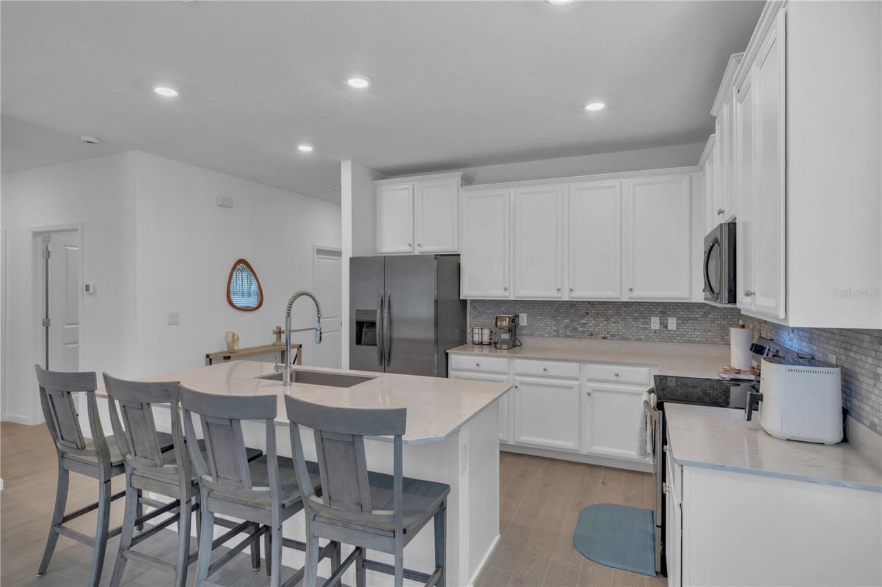 Back on the market, don't miss this opportunity! Welcome to your dream home in Liberty Village, a highly desirable 55+ community where modern comfort meets everyday convenience. Built in 2023 and meticulously maintained, this 3-bedroom, 2-bath, 2 Car Garage home with a den/study offers a thoughtful layout designed for both style and functionality.Step inside to an open, light-filled floor plan perfect for entertaining or relaxed living. The expansive owner's suite is a private retreat featuring a spacious walk-in closet and dual-vanity bath. The chef-inspired kitchen shines with a large center island with seating, high-end Frigidaire stainless steel appliances, and seamless flow into the living and dining areas.Unwind on the screened-in lanai and take in Florida's breathtaking sunrises and sunsets. A 2-car garage provides ample room for storage, hobbies, or golf gear. Residents enjoy brand-new resort-style amenities, with community pool, pickle ball court, low HOA fees, and no CDD a rare and valuable combination.Ideally located, close to State Road 200, this home offers easy access to shopping, dining, golf courses, medical facilities, and outdoor recreation.Why wait? This move-in-ready home is available now schedule your private showing today and start living the lifestyle you deserve.